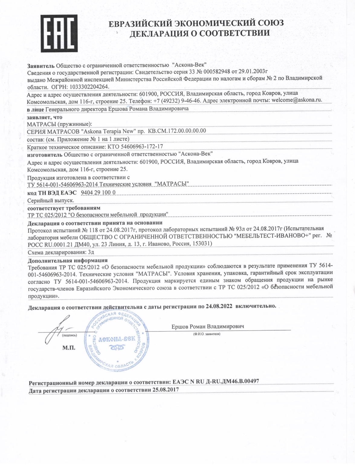 - Продукция имеет сертификат соответствия